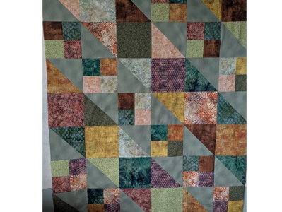 Using a Villa Rosa Pattern called Wild Rover you will learn the basics of quilting and good quilting habits. Working with a very patient teacher you will learn about achieving accurate 1/4" seam allowance, fabric/color selection, how to square up your blocks, and how to complete the quilt top.